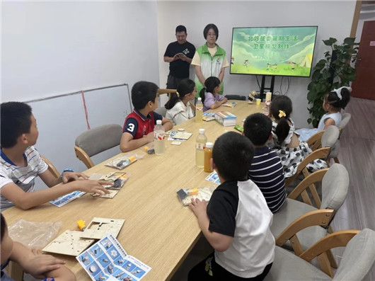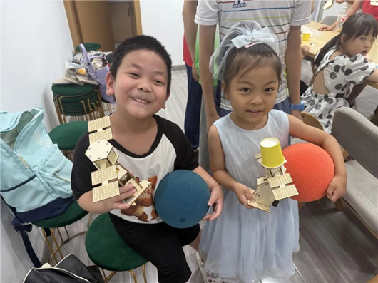 为丰富小朋友的暑期生活,北郊居民区组织了一场别开生面的卫星轨道模型DIY手工活动。
