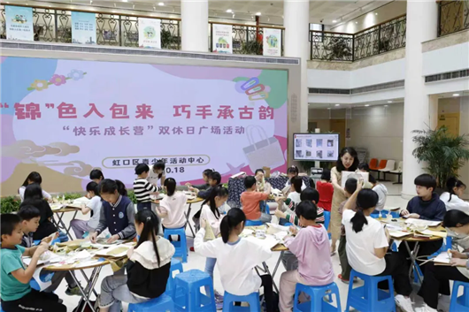 秋意渐浓,清风送爽,2025年10月18日(星期六)上午,虹口区青少年活动中心(以下简称“中心”)一楼大厅内,一群喜爱国学与美术的学生满怀对传统文化的热爱,齐聚一堂,在“中心”李老师的带领下,共同参与“锦”色入包来,巧手承古韵非遗宋锦创作体验活动。孩子们以指尖触摸千年宋锦,以匠心缝制实用雅物,将古典纹样融入日常配饰,在秋日的静谧中,感受非遗技艺的温度与魅力。