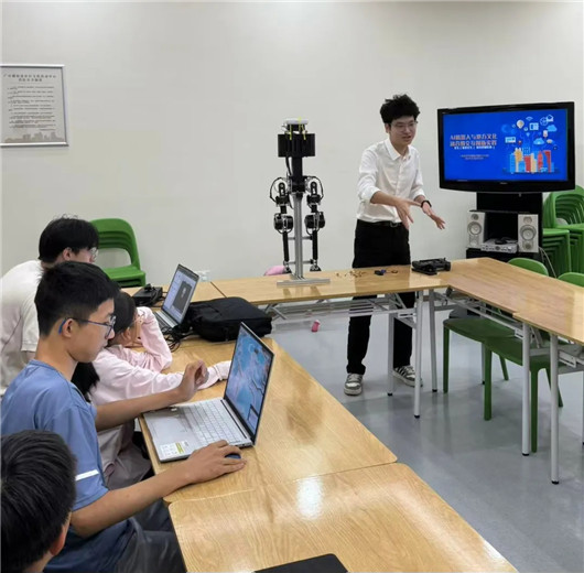 “AI机器人与地方文化融合”作为市级创新课程,在设计之初就充分考虑到青少年群体的特点,“为了确保课程的趣味性和易懂性,我们在理论部分避免了过于深奥的内容,而是通过动画、卡通等生动活泼的形式,将复杂的技术概念转化为孩子们易于理解的语言。”唐云齐介绍说,在实操环节,课程团队特意配备助教老师全程跟踪指导,确保每位学员都能得到充分的学习支持。
