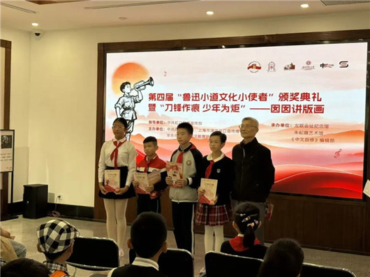 近日,第四届“鲁迅小道文化小使者”颁奖典礼暨“刀锋作痕、少年为炬”囡囡现场讲版画活动在朱屺瞻艺术馆一楼展厅举行。来自上海各区的学生、家长与文化界嘉宾共同见证红色文脉在青少年手中薪火相传。