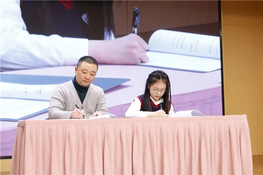 ▲汤馨语在聘用合同上签下自己的名字,成为新任“台长”
