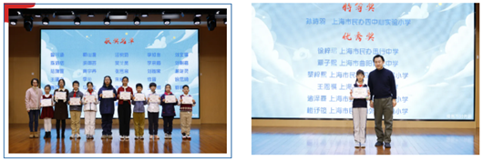 颁奖环节中,曾珺涵、陈语恬、陆旖萱等10位小记者作为代表,上台领取长三角素养大赛市级奖项,此次大赛小记者团共有33人脱颖而出斩获荣誉。LOGO设计征集大赛的获奖选手也同步受表彰,其中,就读于上海市民办四中心实验小学的孙诗羽设计的作品被选为电视台台标,现场她还分享了设计理念与创作故事。
