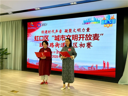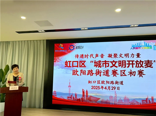 近日,“传递时代声音凝聚文明力量”虹口区“城市文明开放麦”欧阳路街道分赛区初赛在欧阳路街道新时代文明实践分中心举办。本次活动旨在深入挖掘、生动讲述、广泛传播城市文明的鲜活故事,汇聚向善向上的精神力量,不断提升城区文明程度和虹口市民文明素养。