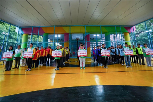 比赛环节中,趣味高尔夫、水阻划船等六大项目轮番展开。运动员们团结拼搏,裁判员公平公正,志愿者贴心协助,现场氛围温馨活跃。
