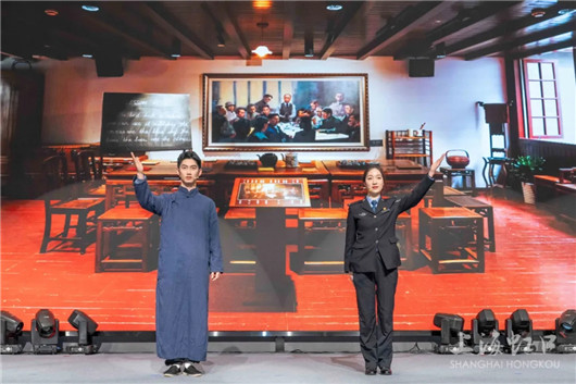 虹口公安分局青年宣讲员季欣奕、中共四大纪念馆青年宣讲员王子涵的情景宣讲《那一抹红已漫山遍野》,将百年前中共四大召开时的紧张险境与当下的美好生活巧妙串联,通过宣讲员与“四大代表”的跨时空对话,让观众在沉浸式体验中感悟红色信仰的力量。这一宣讲片段选自虹口公安分局、中共四大纪念馆等单位联手创排的沉浸式宣讲情景剧《广吉里》。去年,该剧共展演40场,线上线下受众近17万人,深受青少年欢迎。