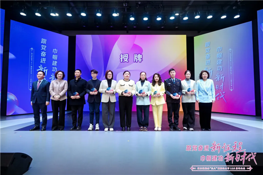 谢榕榕、陈帅、郑蔚芸为巾帼虹讲堂讲师丁晓、社区少年守护人陈梁顺、三新妇联联盟盟主陈晓、妇女儿童健康守护者姚文、法律服务践行者吴祺桢、爱心邻家妈妈阎芳、“家+书屋”主理人王文彦和最美家庭联盟代表侯钰烽等8位热心妇女儿童事业发展的主理人授牌。