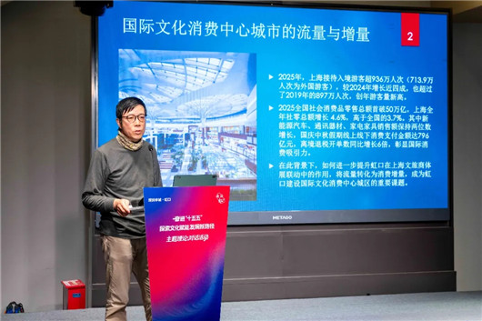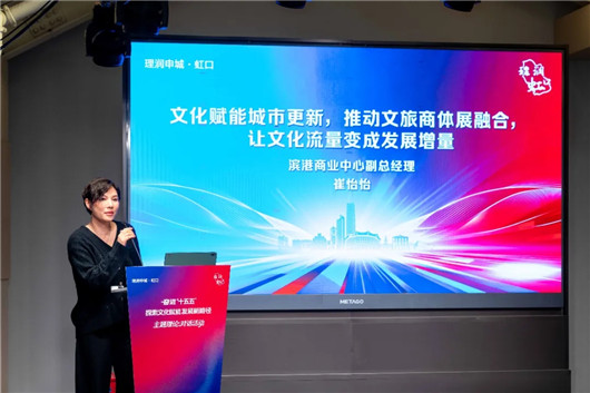 滨港商业中心副总经理崔怡怡则聚焦“文化赋能城市更新”,以滨港·今潮8弄近年来的发展与成长,阐述通过文旅商体展联动融合,将文化流量转化为区域发展增量的实践路径,为虹口城市更新提供可借鉴经验。