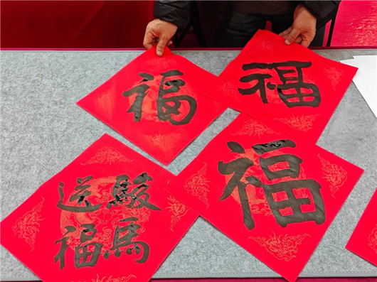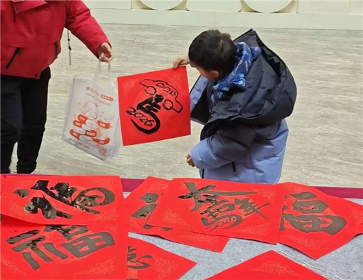 活动现场,一位喜爱小汽车的小朋友得到了书法老师专门为其创作的、融入了小汽车图案的创意“福”字,这份独特的礼物让传统书法充满了趣味。