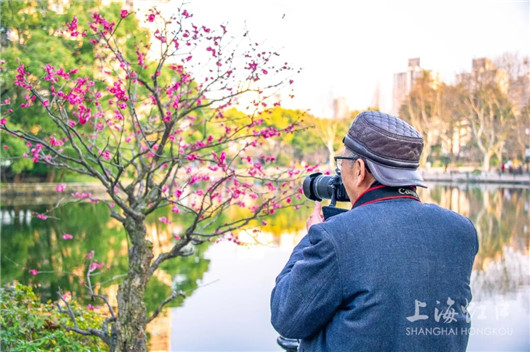 从宝山特地赶来的张女士说:“这几天摄影群里都在热议各公园的梅花,鲁迅公园的规模和质量是数一数二的。我这次专程来拍龙游梅,它的曲线构图很有诗意、具有造型感。”