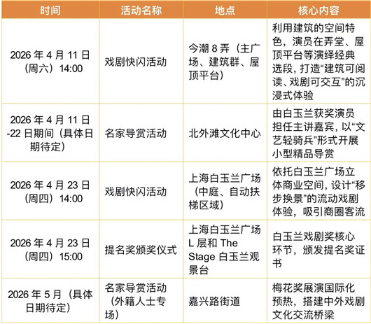 虹口系列活动将紧扣“双奖联动、动静结合、本土与国际交融”核心,打破传统剧场边界,让戏剧艺术走进城市街区与商业空间,彰显虹口区深厚的人文底蕴与现代都市活力,实现白玉兰戏剧奖与梅花奖展演双IP联动预热,打造虹口戏剧文化特色名片。
