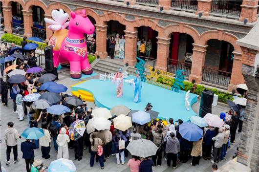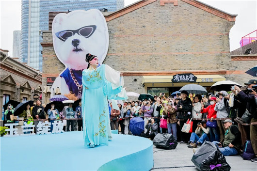 4月11日,第34届上海白玉兰戏剧表演艺术奖戏剧嘉年华首场快闪演出,在海派潮流地标滨港商业中心今潮8弄精彩上演。尽管天空飘着蒙蒙细雨,却丝毫未减市民游客的观戏热情。