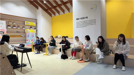 流行乐艺术课则氛围轻松热烈,老师教授经验丰富,引导学员们从不敢开口到自信跟唱,从气息短促到能用腹式呼吸完成长乐句。不仅如此,老师还巧妙融入低碳生态理念,带领大家用环保素材制作简易节奏乐器,边唱边打拍子,笑声不断,让青年感受音乐与环保融合的魅力。