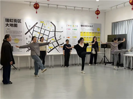 每周四、周五晚,“楼下坐坐”瑞虹共享会客厅·天虹站青年中心青年夜校准时开课,近40名社区青年前来学习太极拳和流行乐艺术课程。