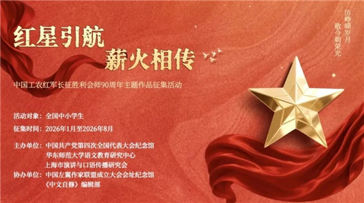 “红星引航、薪火相传”作品征集活动将持续至8月,优秀作品将在“魔都语文课代表”等平台进行展示。主办方期待更多青少年通过创作参与,成为红色故事的讲述者和长征精神的传播者,让红星永远引航,让薪火永续相传。