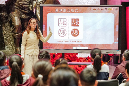 在课堂上,她引导同学们思考:“如果要用一个词来形容此刻对长征精神的体会,你会选择什么?”同学们选择了“铭记”“永恒”“不朽”或“传承”等词汇。随后,在老师的指导下,同学们亲手雕刻出自己选择的词语。李蔚老师期待道:“每个人的收获可能都不一样,因为他最后雕刻的字可能不同。无论是‘传承’还是一个‘赞’字、一颗五角星,都是此刻他最真实的情感的抒发。”