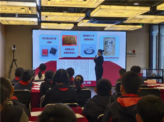 活动中,少年们围绕柔石的印章、胡也频的茶具、冯铿的毛背心、鲁迅手稿等珍贵文物分组探寻,在细致观察中挖掘历史细节、感悟精神力量。授课教师结合文物背后的故事,用儿童易懂的语言解读历史,引导学生将展陈信息转化为生动叙事,把毛背心上的弹痕、手稿里的笔触、印章中的风骨,化作可感知、可传承的精神密码。