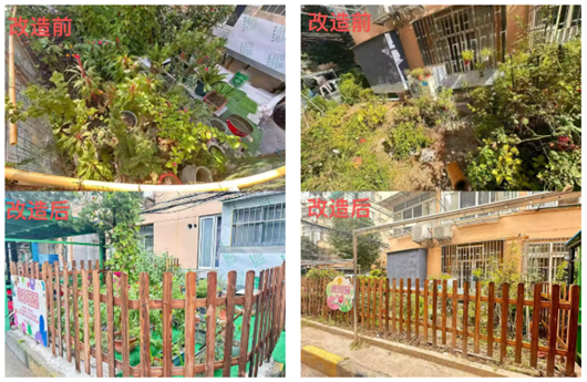 方案落地后,居委会迅速向街道申请专项经费,采购原木色木质栅栏、修枝剪、洒水壶等园艺工具,以及带二维码的植物插牌。栅栏明确花园边界、增添层次;工具存于“邻里工具箱”方便取用;植物牌标注品种与习性,扫码还能看养护贴士。改造中,居委工作人员与居民志愿者一同清理杂草、调整花型。“以前种花是‘单打独斗’,现在和大家一起干,花园美了,邻里也更亲了!”负责照料花卉的志愿者陈师傅笑着说道。