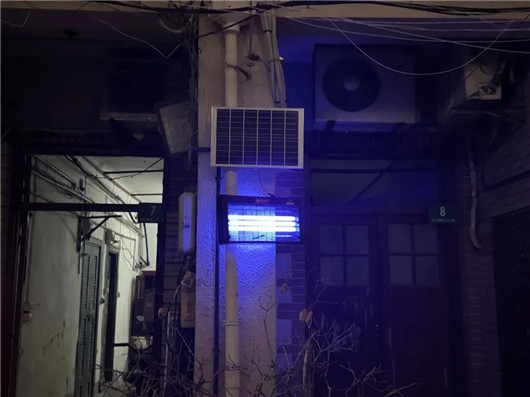 太阳能灭蚊灯项目的实施,同步改善了弄堂区域夜间照明条件。针对部分弄堂存在的照明死角问题,灭蚊灯辅助照明功能有效填补了夜间出行安全隐患,提升了居民夜间活动的便利性与安全性。
