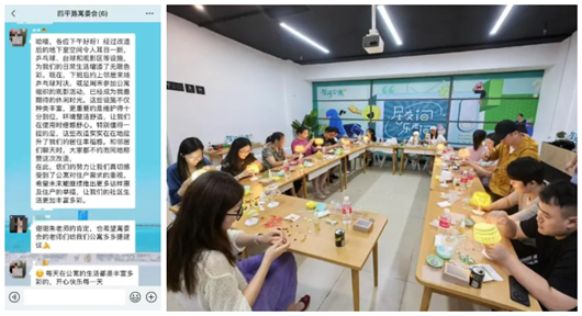 郭妍敏锐捕捉青年群体在社区生活中的需求痛点,以青年兴趣为切入点,整合辖区资源,与友间公寓共建“青年共享空间”。通过开展桌游、乒乓球、手工DIY等轻松有趣的活动,快速吸引大量青年主动参与;同时,围绕青年成长与社区发展需求,定期举办论坛、沙龙,并策划“无废环保”主题系列活动,让空间功能不断丰富、活力持续提升。青年群体从“一间房”的独立住户,逐步转变为“一个家”的社区成员,越来越多的青年主动贡献自身才智,积极投身社区自治工作。