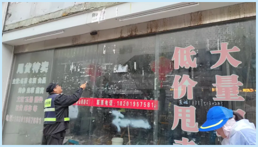 城管中队、市容所、联合社服队员逐一走访沿街商铺,强化门责宣传与执法检查,引导商户主动整治门前环境、规范经营秩序,并对沿街空关店铺乱张贴开展清除。