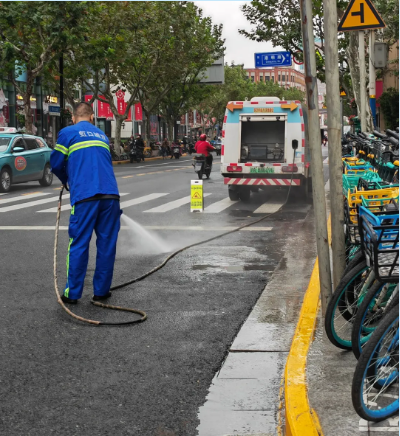 重点围绕乍浦路、昆山路、四川北路核心区域、景观区域及CITYWALK路线周边环境开展深度保洁,地面烟蒂、垃圾进行捡拾,人行道、沟底等区域进行深度机器清扫、冲洗。