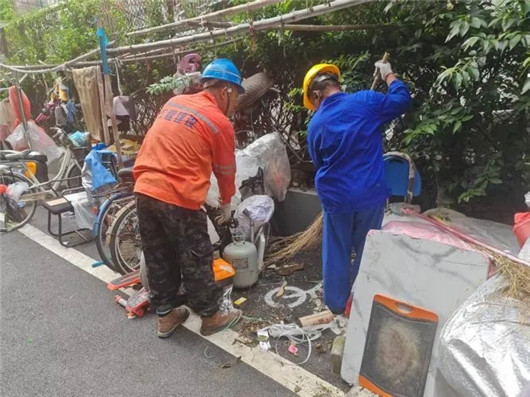 长期占道、积灰生锈的“僵尸车”不仅挤占公共空间,更影响社区环境与安全。宏阳物业多次组织开展“僵尸车”专项整治行动,并动员居民共同参与监督管理。行动前,物业对车棚进行了地毯式排查,详细记录“僵尸车”的数量、位置及车辆的实际状况,张贴清理通知并设置“缓冲期”,提醒居民及时清理。清理当天,居委会、物业、民警、街道综合行政执法队等多方组成清理小组,对无主或逾期未处理的车辆统一清运至指定场地。在此过程中,宏阳物业还对车棚进行深度清扫,并重新规划了停车区域,确保车棚通道畅通、环境整洁。