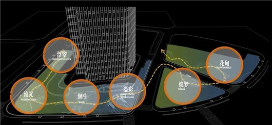 这里的每一个细节都能让人感受到时光的流转与历史的变迁,成为激发城市活力的共享空间,并兼具功能、艺术与生态价值。分为流光、溢彩、潮生、浮翠、焕梦(鎏金乐园)、花甸六个景点。