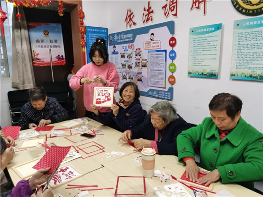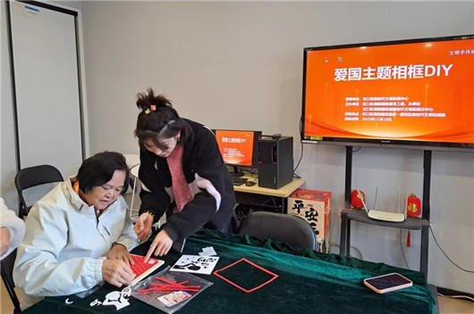 近日,曲一居民区举办了一场爱国主题相框制作手工活动,不少喜欢手工活动的居民报名参加。
