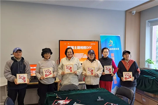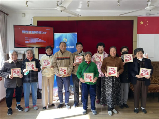 活动尾声,居民们举着做好的相框拍照留念,此次活动,不仅锻炼了居民们的动手能力和创造力,更在创作过程中激发了居民对祖国的热爱之情和民族自豪感。