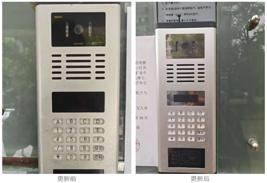 宝元居民区的东方都市景苑小区楼道门禁已使用多年,随着使用年限增长逐渐老化,为切实改善小区居住环境、提升安全防护水平,经“三驾马车”研究决定,对小区9栋居民楼的门禁设备进行全面更新,并同步重新粉刷楼道大厅公共区域。