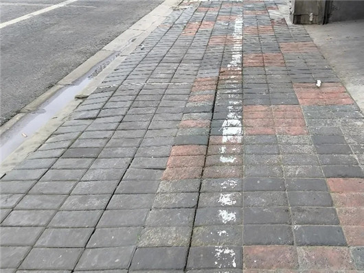 霍山路(保定路-大连路)长约152米,周边有多个办公楼及居民住宅。此前该路段人行道面砖陈旧破损,存在失稳和变形情况,雨天容易积水,给行人带来安全隐患。