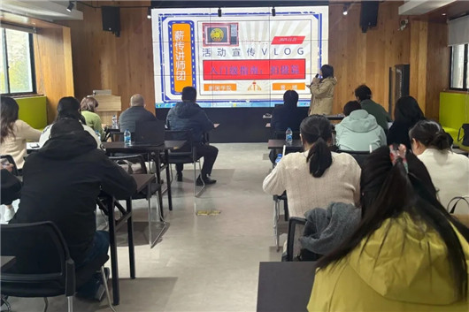 明佳集团新时代文明特色实践站携手虹口创客中心共同承办新媒体实操技能培训活动,特邀复旦大学博士生讲师团曾一埔讲师,以“活动宣传VLOG入门级指南”为主题,为虹口区创客中心入驻企业代表及明佳集团员工带来专业授课。课程围绕VLOG制作全流程,系统性讲解拍摄技巧、剪辑方法与后期包装等实用知识,为企业宣传与品牌推广注入新动能。