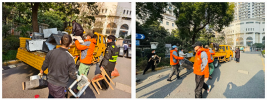 对于未能按时清理的堆物,虬江居民区党总支、居委会在街道的指导和支持下,组织居委干部、社区工作者、社区综合管理力量、物业企业工作人员等开展集中清理、整治,对楼道、车库内堆积的旧家具、废弃纸箱等杂物进行彻底清理,齐心协力整治卫生死角,规范车辆停放秩序。