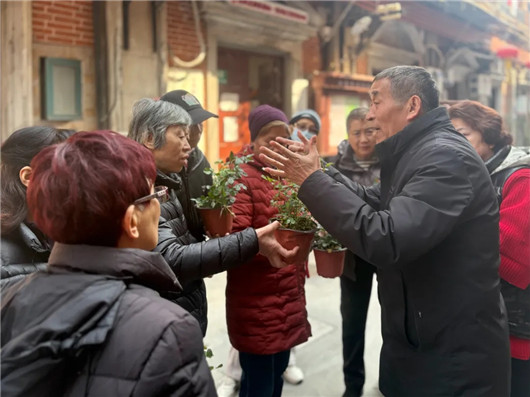 春回虹口,新绿满城。四川北路街道的石库门弄堂里,社区园艺师王端贵被居民们团团围住,他指着一株略显萎蔫的绿植向居民讲解:“水不能浇太多,温度上了10度,就要适当多晒太阳了……”