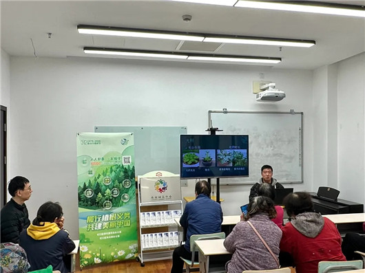 ▲区林长办在彩虹湾公园开展植树节专题活动,向市民宣讲虹口区认建认养工作的特色做法