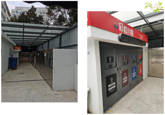 为破解这一民生痛点,物业公司将物业服务达标奖励用于垃圾房专项微更新,开启了历时两个月的改造工程。改造完成后,一座崭新明亮、干净宽敞的“彩虹小屋”垃圾厢房正式投入使用,成为小区里的一抹亮色。
